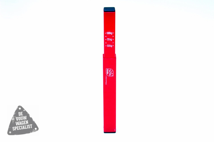 Meter voor het meten van de kogeldruk van je vouwwagen, tenttrailer, caravan of aanhangwagen. Plaats hem onder de koppeling en draai het neuswiel naar beneden waarna de kogeldruk zichtbaar wordt.
