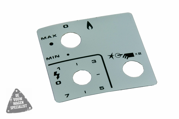 Koelbox indicator plaatje Dometic koelbox RC1200/1600EG/EGP, aanduiding gas en elektra knoppen. Aluminium zelfklevend materiaal.