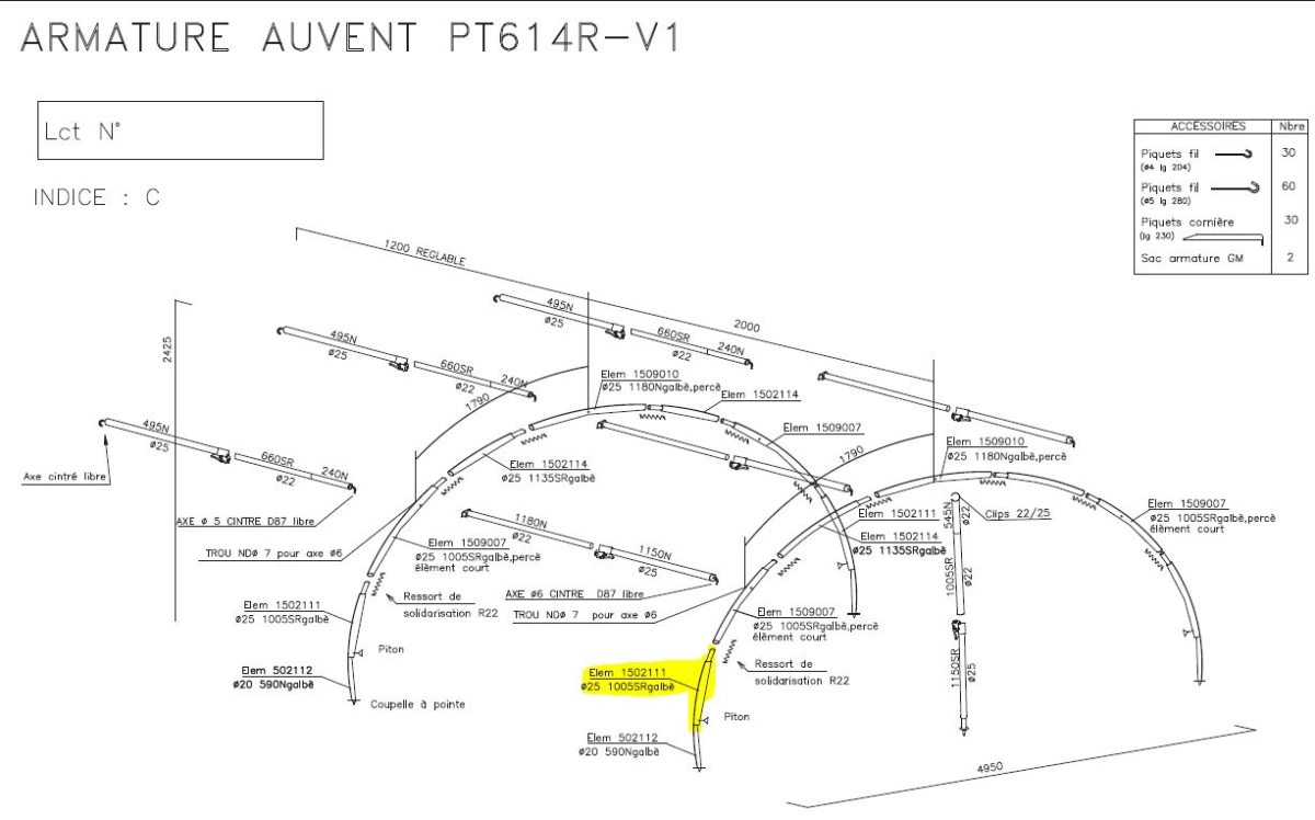Dit is de 2e onderstok van het voortentframe Raclet Safari. Kijk op de tekening Raclet Safari 2019 voor het goede onderdeel.