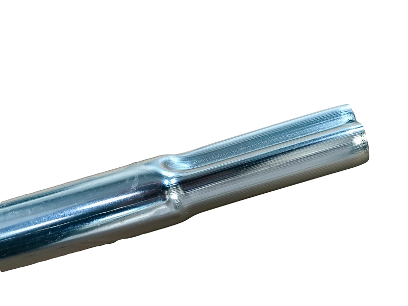 Afmetingen zijn Ø25mm lengte gebogen 1010mm verdunning Ø22mm. Schroefbevestiging aan onderzijde, bovenzijde heeft een verdunning ingeperst, iets gebogen stang.