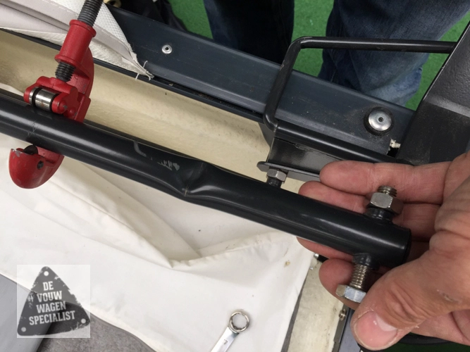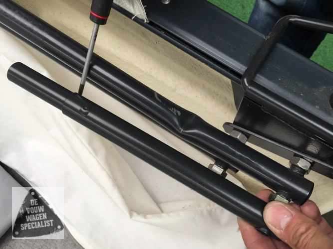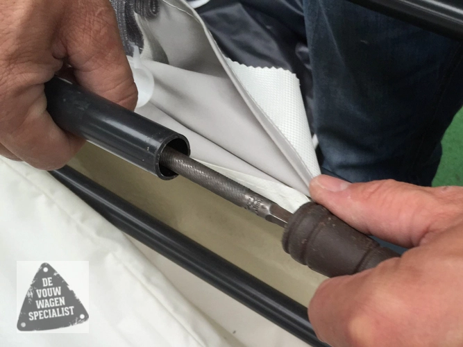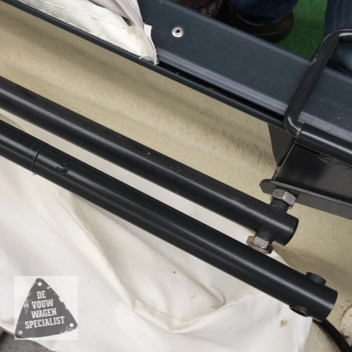 Reparatiestuk om tentboog Camp-let te repareren. Tentboog wordt doorgezaagd net boven de knik waarna het nieuwe stokje hierin gaat. Het gaat hier meestal over de tentboog aan de keukenkant bij de uitklapbeugel.