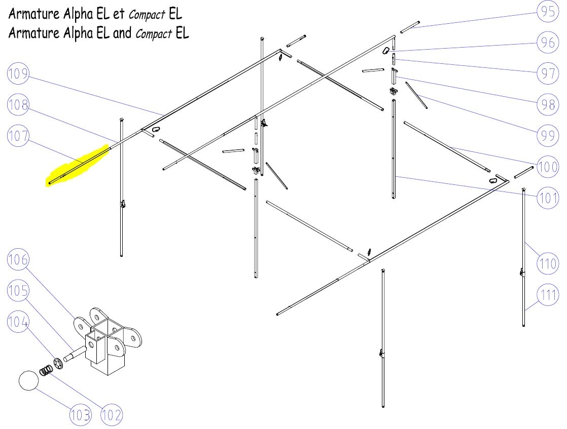 Uitschuifstok dak wagen- voortent dat gebruikt is bij het 1e model Trigano Alpha (2010 t/m 2013) en Raclet Panama. Zie bijgevoegde tekening.