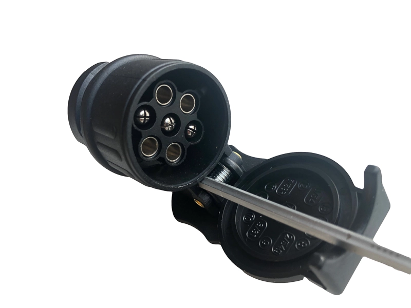 Wordt gebruikt als je een Jaeger stekkerdoos (13 kleine contacten) op de auto hebt en op de vouwwagen een Muliticon West (7 grote en 6 dunne kontakten) of 7 polige stekker hebt.